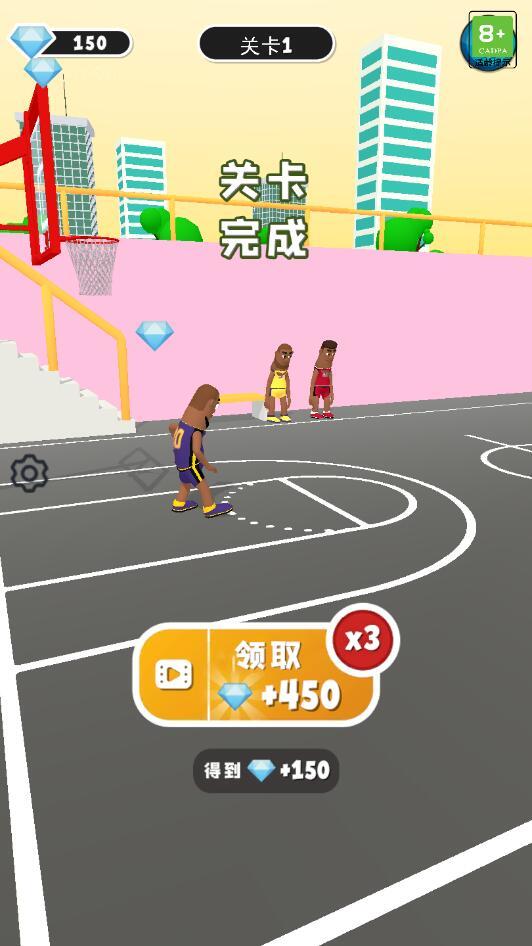 1.拖动角色起飞,瞄准篮筐,将篮球扔进篮筐,获得相应分数。