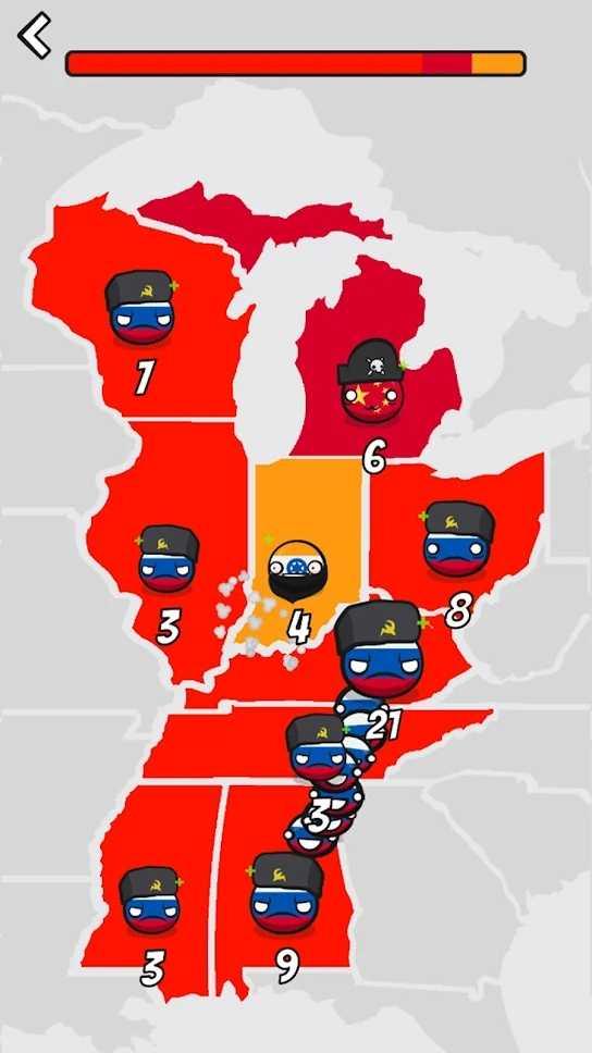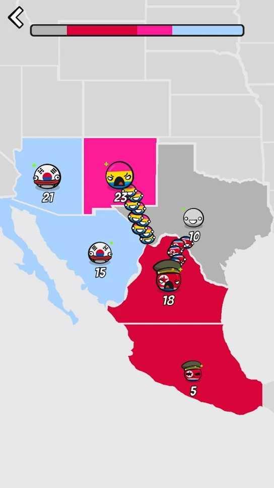 国家球战争是一款策略益智游戏,有很多的皮肤可以解锁,玩家将掌管一个国家,您需要集结军队来占领其他的国家,利用策略能力来赢得胜利,游戏玩法很容易懂,但是在挑战过程中稍有失误就会全军覆没,您敢来挑战吗。