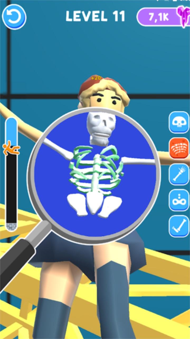 2、控制,获得动力,奔跑,跌倒。你打破的骨头越多,分数就越高。获得奖励并升级您的角色以获得更愉快的体验!