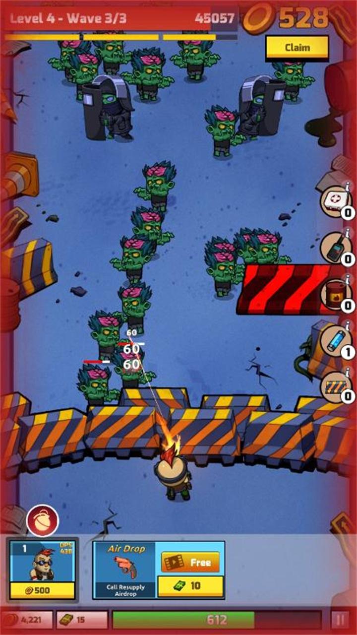作为挂机游戏非常合格,不过在我看来,点击开火的时候非常爽,疯狂的点击屏幕,看着丧尸被我打的支离破碎。感觉算是游戏中最大的一个特点,