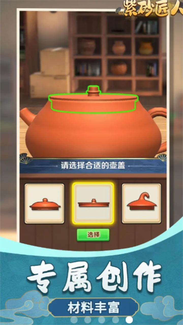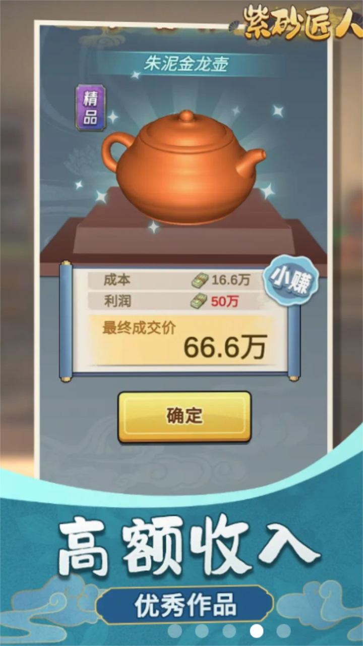 2、在紫砂匠人游戏中你可以亲手做出经典的紫砂壶。也可以充分发挥想象力和创造力来制作各种形态和材质的紫砂壶,制作完成后,不仅能出售给收壶商人。