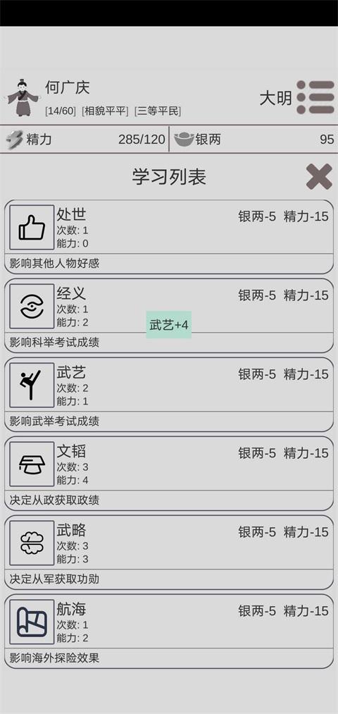 穿越人生无限银两无限精力版是一款不错的穿越休闲类游戏,我们会回到古代不过会有着现代的记忆,从小学习好各项本领之后,我们的发展方向会向着怎样的目标前行呢?开放式的结局能让玩家不断的探索,一个现代人在古代会有怎样的事迹呢?我们拭目以待!