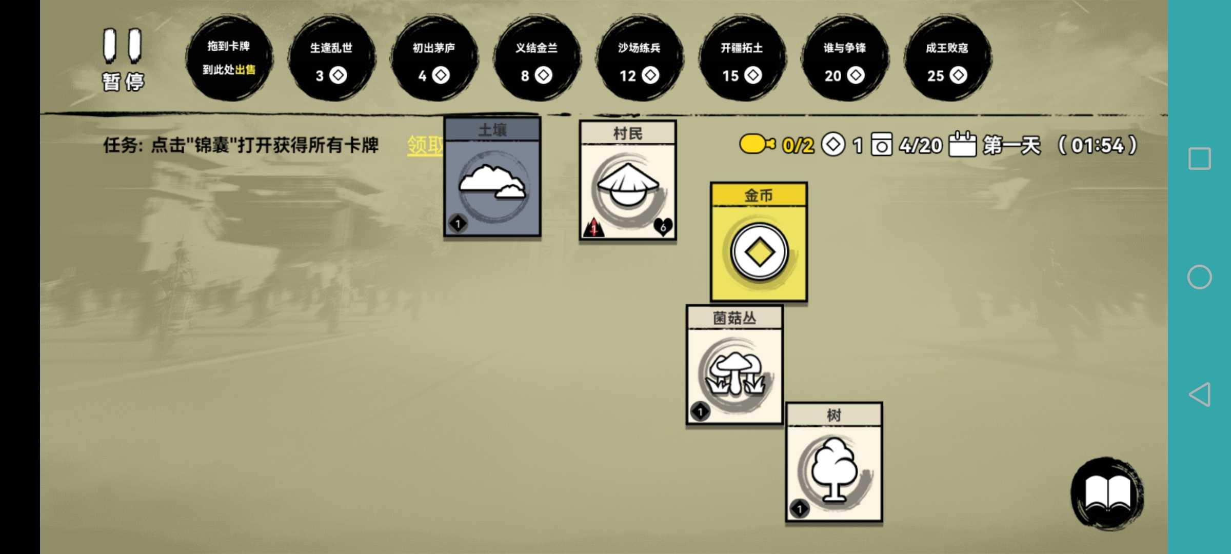 2.尽情的组合卡牌,创造不同的物品,一点点丰富村庄设施;