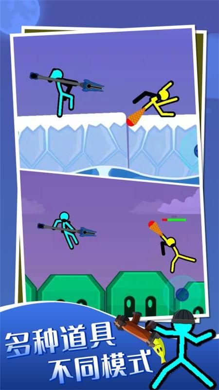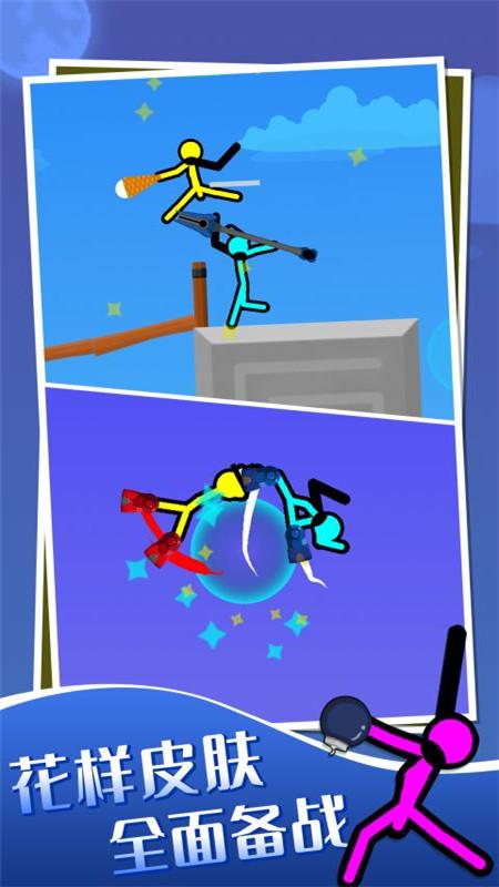 火柴人决斗2游戏是一款动作格斗类游戏,玩家选择自己喜欢的火柴人进行对决,多样的战斗方法、不同的战斗模式、丰富的游戏道具、强大的武器装备、炫酷的技能和花样的皮肤,让玩家畅快玩。对决胜利可以获得武器升级道具,越来越强。