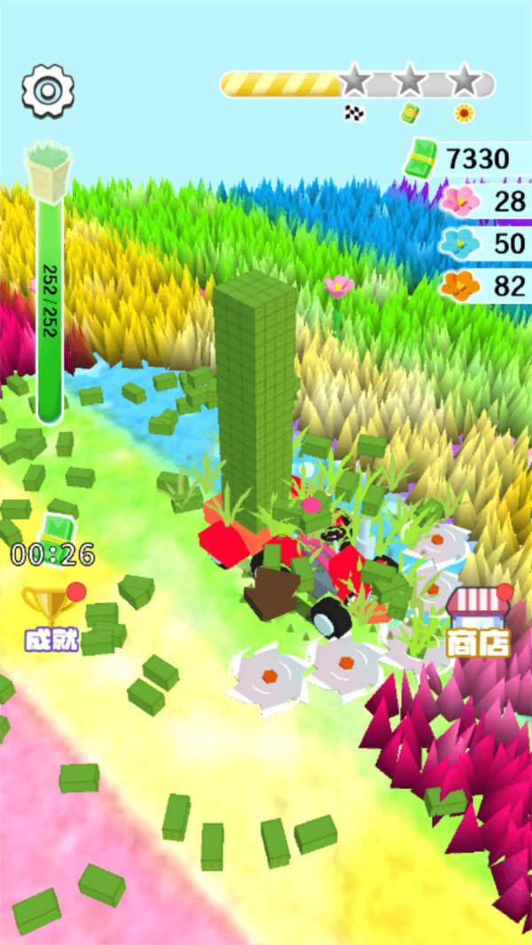 3、多种不同的关卡让玩家体验,轻松就能割草;适合所有的玩家,上手的难度不大。