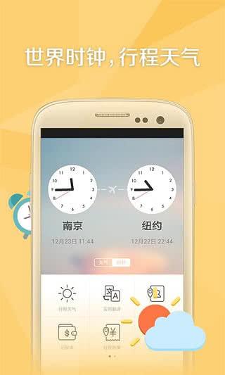 用户设定行程后,会精准的展示出发地和目的地的当地时钟和日期,最多支持10个城市的时间同时显示;目前支持国内外2500个城市;