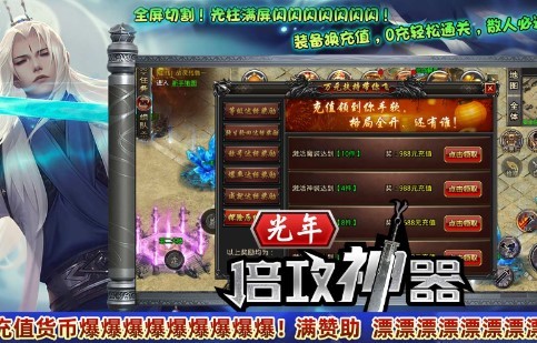 光年倍攻神器是一款意义非凡的角色扮演游戏,传奇类型游戏,全屏特效,光速切割,自动拾取回收的传奇功能,大量神装轻松获取,每天完成打怪任务获取非常多的灵符和麻痹特戒,登录传奇游戏获取抽取盲盒的机会,不断递增的boss和野怪数量,不用担心,安心传奇,完成特殊的传奇游戏任务,获取各种专属的加成,非常值得去尝试的传奇竞技游戏。
