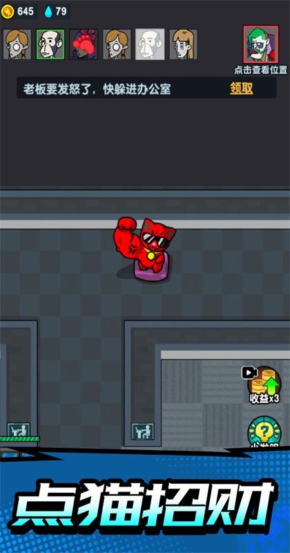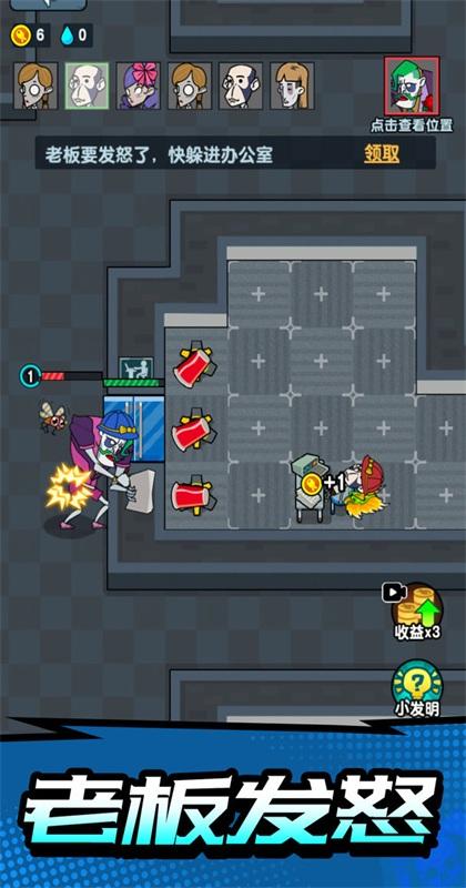 游戏也就那样,我在别的地方,玩过,一旦你拿了,如果你去抽屉拿老板的私房钱,你就会被他疯狂的攻击,我每次都拿私房钱,他就是不打别人,光打我,估计是因为一旦拿了私房钱,他就会锁定你,所以你的门要高级,别忘了购买武器,一旦拿了私房钱,先升级门和,桌子,之后就是购置武器,倒了纯净水,老板基本就可以,气炸了