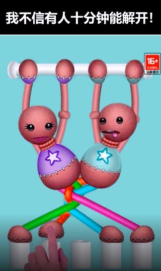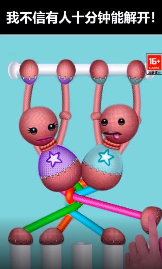 3、彩绳解解乐的玩家可以按照颜色的顺序解开绳结,游戏非常考验智商,游戏中广告给玩家纯粹的游戏体验。