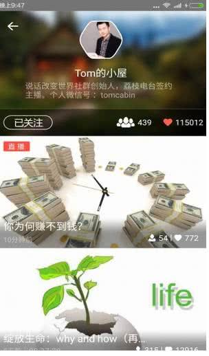4.可以关注主播,显示关注的主播的视频列表