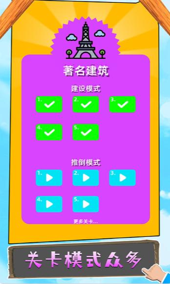 2、开动你聪明的头脑,选择合适的的材料去搭建各种建筑,非常耐玩;
