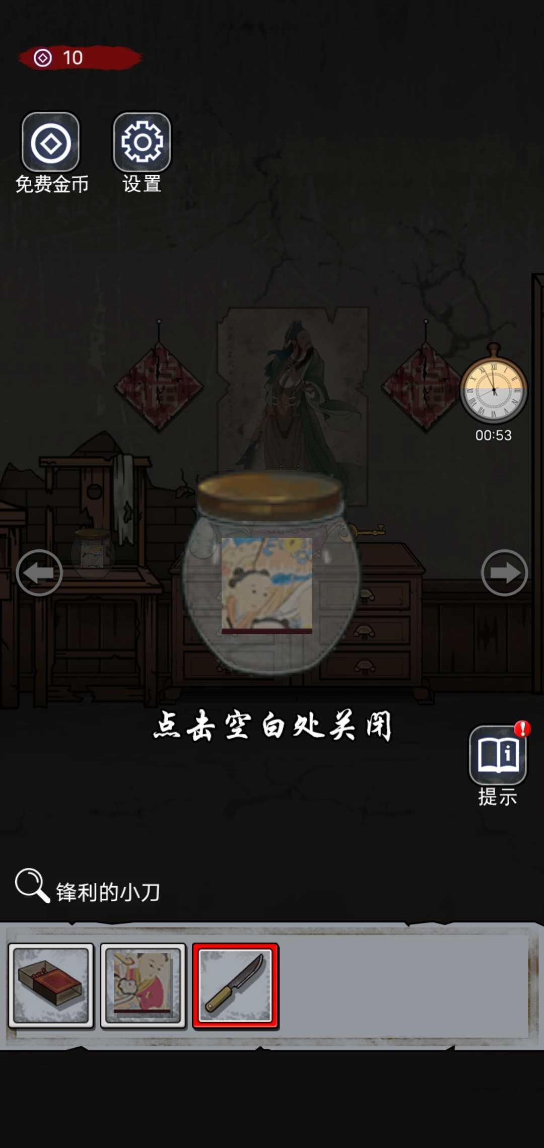 - 仔细观察游戏中每一个角落,从而寻找到有用的道具或者线索,在后续的机关中可以帮助大家解谜;