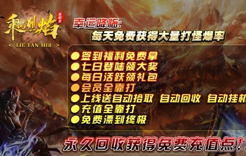 三端互通的乘风烈焰官方版传奇来袭,无限刀传奇竞技游戏,多职业传奇,职业相互平衡,签到获取免费的游戏奖励,连续登录的七天里面,每天都有对应奖励,会员特权全都有,上线轻松获取多类型的资源礼包,自动挂机传奇,自动拾取,买卖系统非常有趣,轻松白嫖到终极武器,非常顺畅传奇游戏过程,快速通关,非常值得去尝试的传奇竞技冒险游戏。