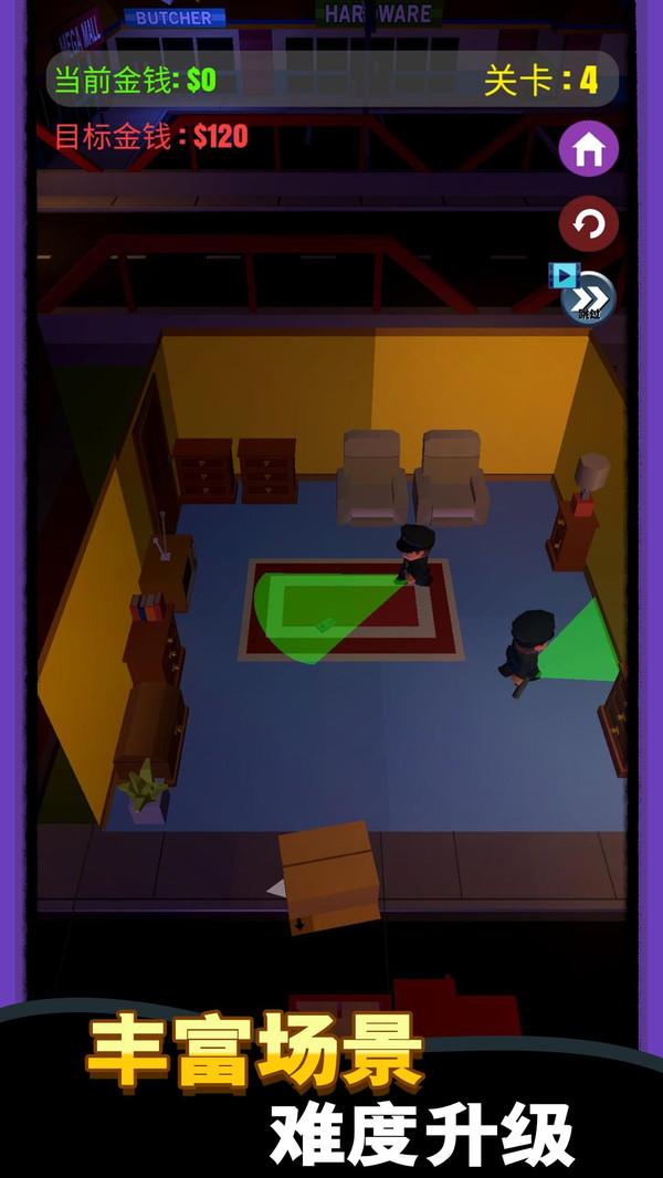 1、在不同的场景当中进行探索,偷走需要的东西,完成各种不同的挑战超过瘾。