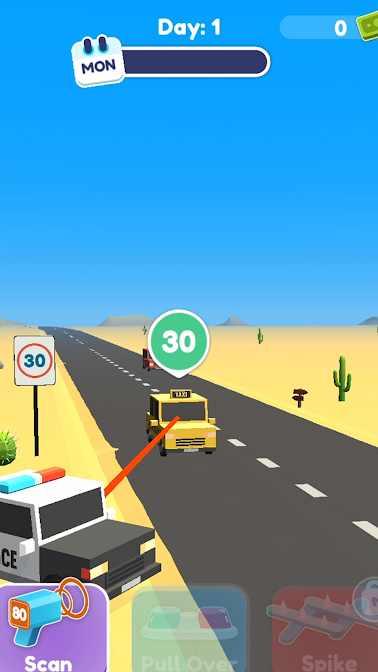 观察道路上接连而来的驾驶们,睁大眼睛注意任何不遵守法律的人。觉得那辆车超速了吗?用你的警察扫描仪更仔细看清楚!抓住罪犯,并评估是否该对其罚款、逮捕或释放。