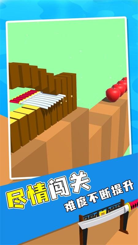 1、精彩的飞刀切除闯关玩法,拿起飞刀不断的向前冲锋。
