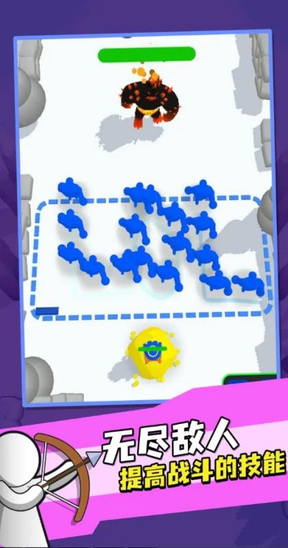 涂鸦输出游戏中玩家们可以通过操控自己的涂鸦人物不断地通过战斗的方式来扩大自己的队伍,充满绘画的风格也让玩家们可以感受到非常有趣的,每一关的关卡中都拥有不同的敌人阻挡在你的面前来击杀他们获得奖励。