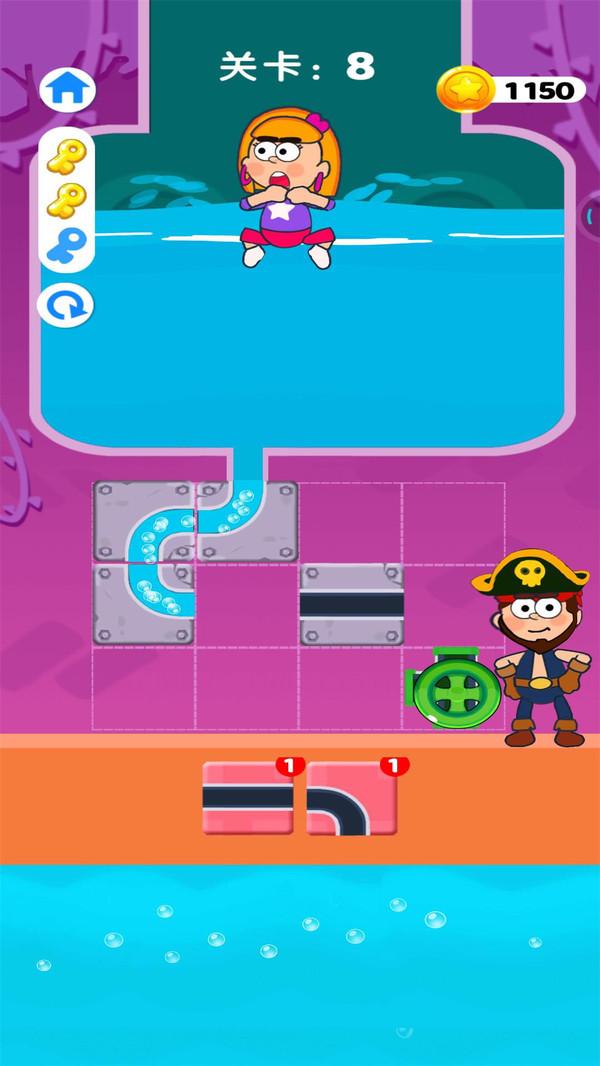 3.点击游戏中的屏幕移动管道。连接管道后,将有让水流连通的任务,以完成灭火