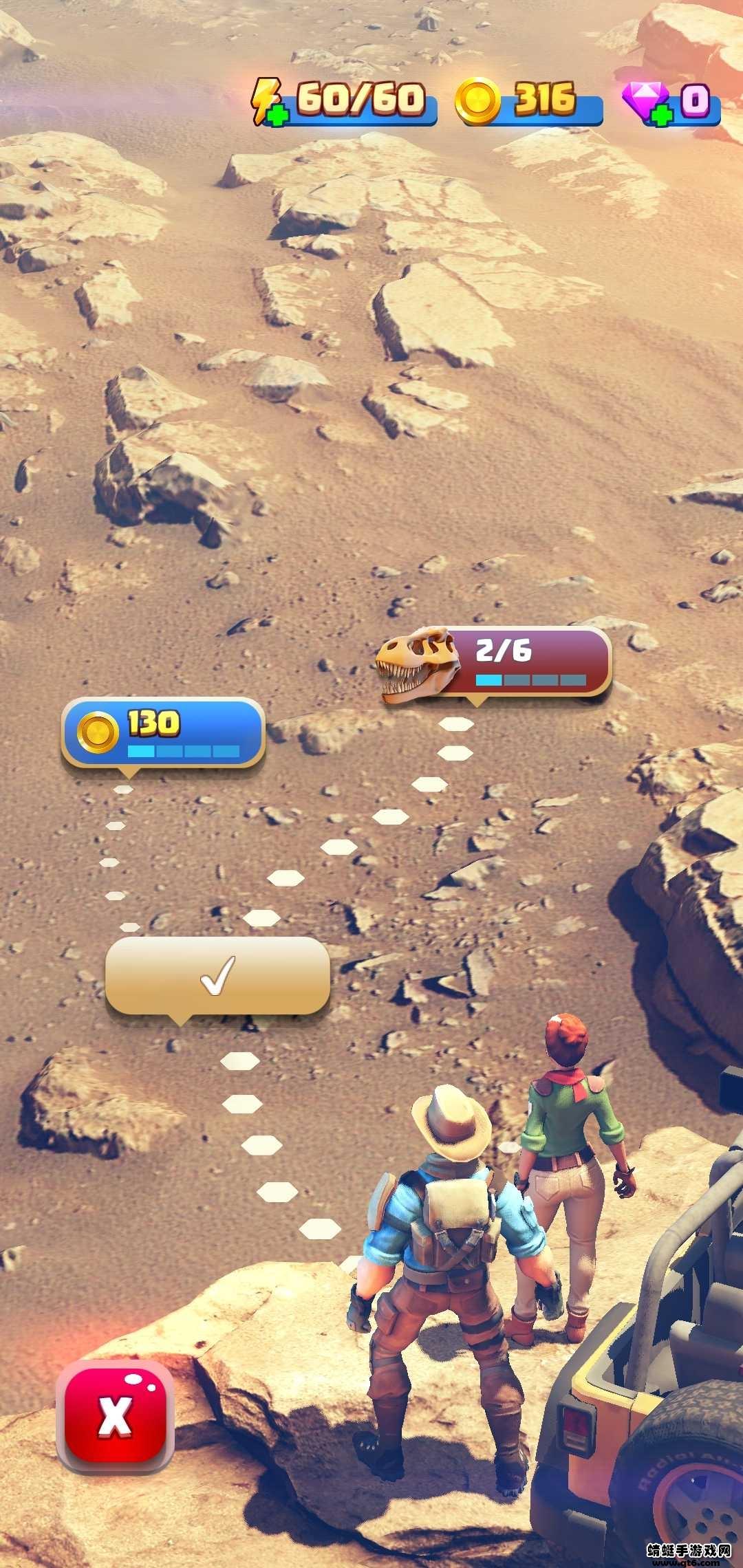 2.挖到的化石碎片能够自动拼装,随着挖掘深度的不断增加,最终将能够还原出一只逼真恐龙;
