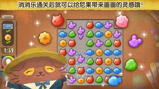 通关可以拿到金币和解锁画像,根据后续的剧情慢慢赎回家具,最后是装修房间,循序渐进的通关玩法,让人根本就停不下来,关卡的难度并不高,只能算适中,这里的关卡说的是消消乐玩法,通过消除猫咪和颜料,来完成闯关任务,获得尼果最需要的金币,重整记忆中温暖的家。