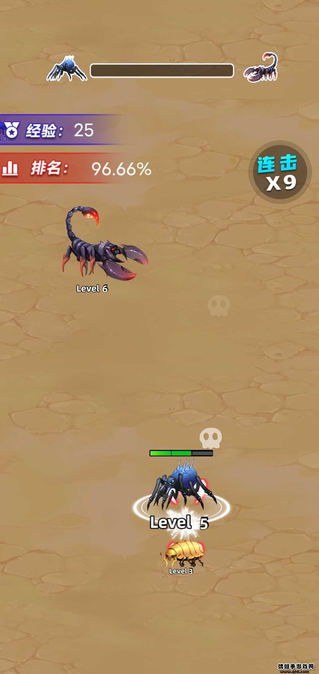 必须持续进化。根据吞掉全部小于自身或与自身同样等级的昆虫来进化自身。