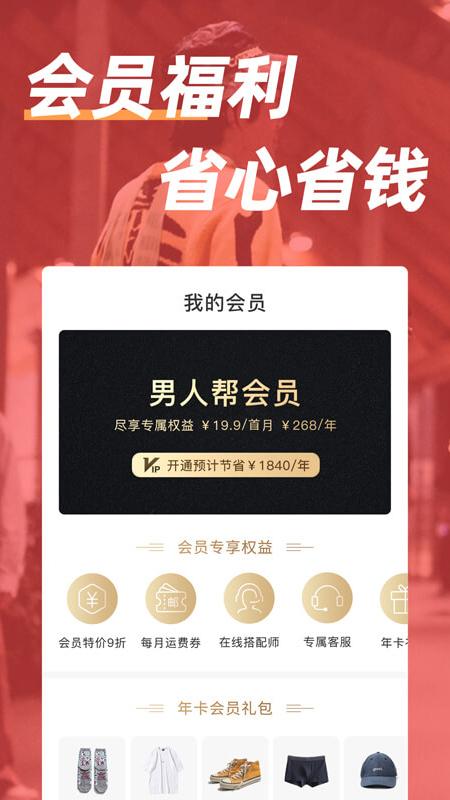 男人帮是一款专门为男士推出的购物平台,在这款软件里面您能够快速买到心仪的衣服,专业的穿衣顾问为您搭配好服饰,让您越来越有范,购物有保障,一键购物,送货到家,让工作繁忙的您足不出户就能挑选到心仪的衣服;