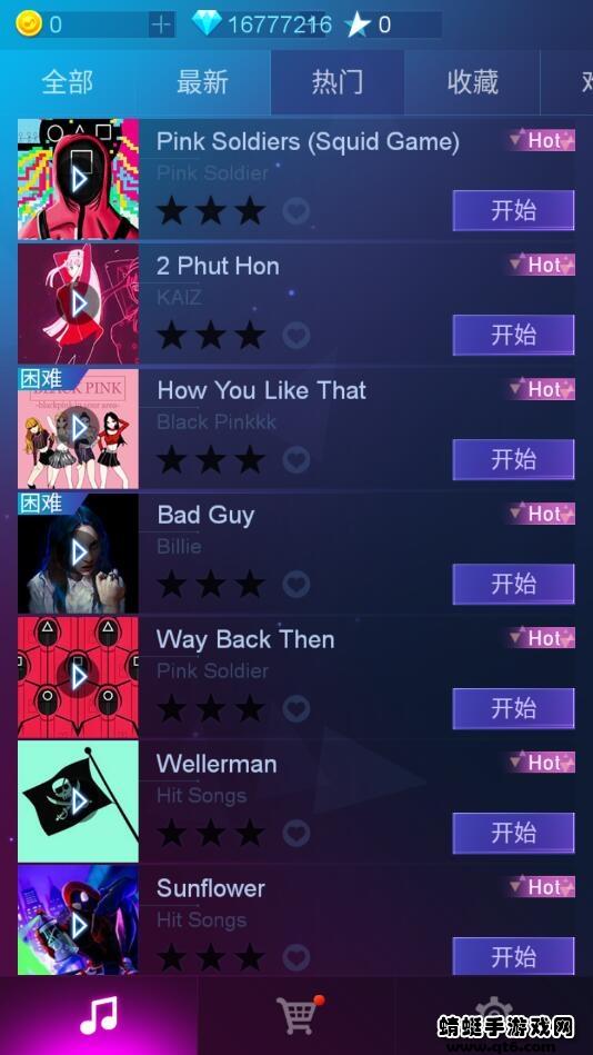 2.在游戏里玩家可以选择不同类型和风格的歌曲在游戏里自由的进行闯关。