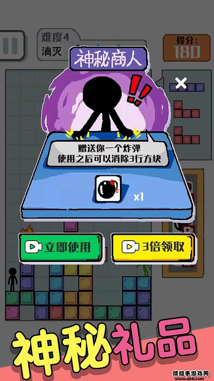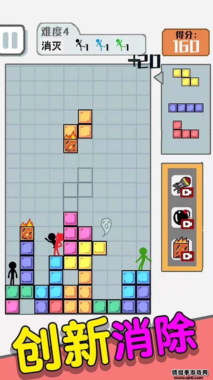 全新体验的俄罗斯方块游戏!快来消灭捣蛋的火柴人!