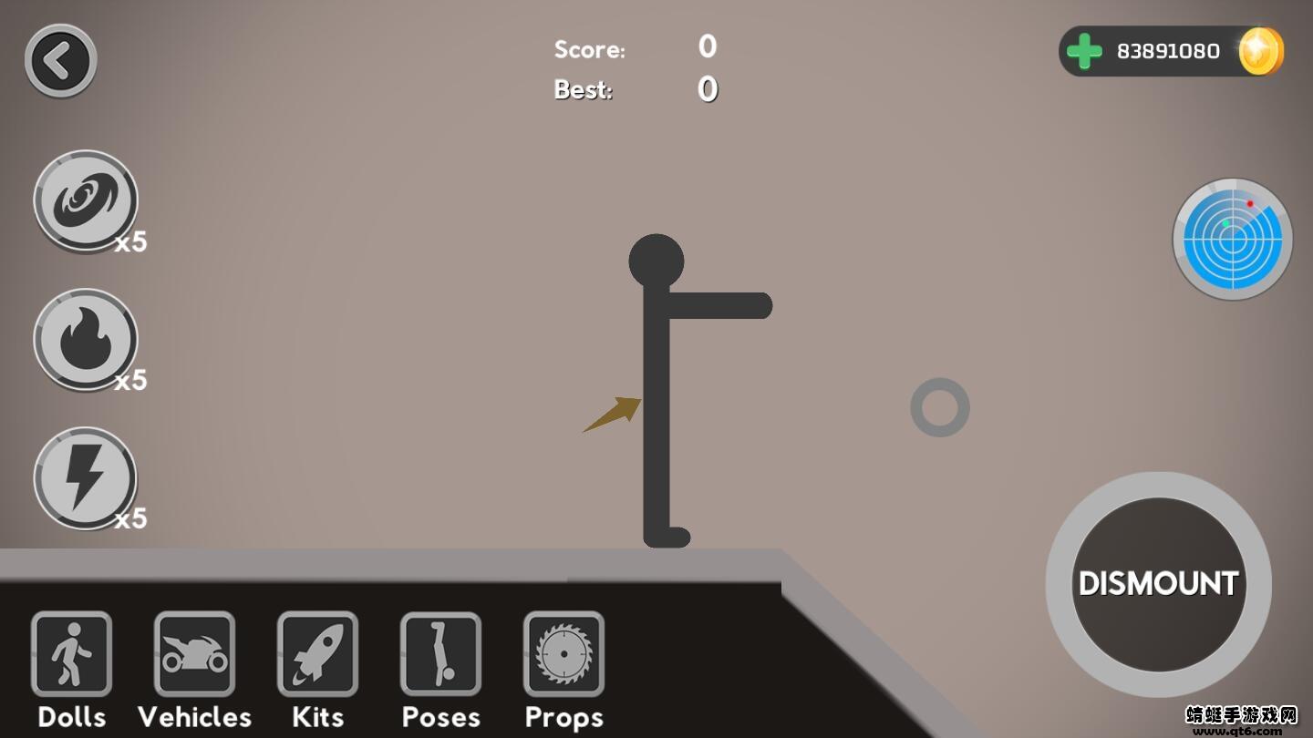 将火柴人从最高的梯子推到底部,并撞上很多障碍物,造成尽可能多的伤害。
