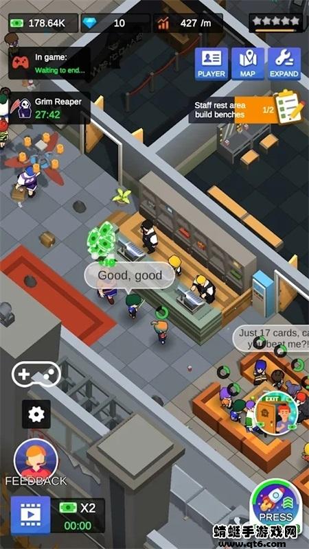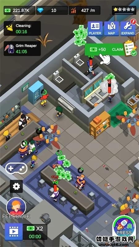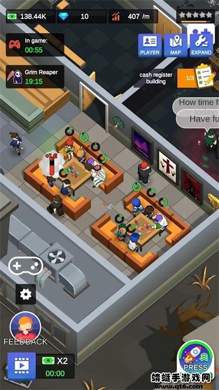 2、玩家在游戏中扮演一个密室的老板,招募客人,升级店面。