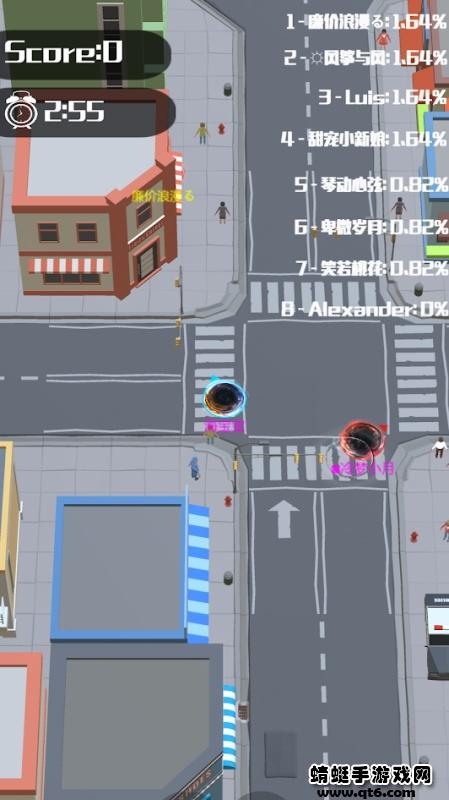 ③只需要滑动屏幕操作,游戏界面色彩丰富,游戏设定在城市里,范围的话不是很大,但是里面物品比较丰富,想要尽快获得高分的话,操作必须得快速,而且具有侵略性。开局在周围发育一些汽车、树木、建筑物等,体积稍微大一些,有对抗能力的时候,就直接进攻,这样的好处就是上分较快,但是操作的基础性要求很高,也是比较危险的一种方法。如果想做一个佛系黑洞的话,只需要打打边路吃一些汽车灌木丛,仅靠这些小玩意也是可以发育起来的,从而避免了战争。
