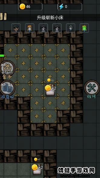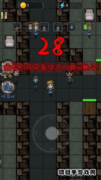 1、末日禁区求生是一款2D塔防小游戏。游戏中玩家需躲避猛鬼的追捕,寻找适合自己的宿舍躲避,并发展经济建造炮台,抵御猛鬼。