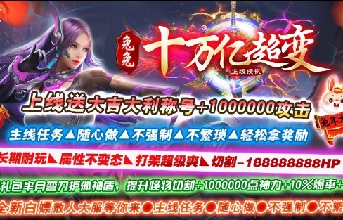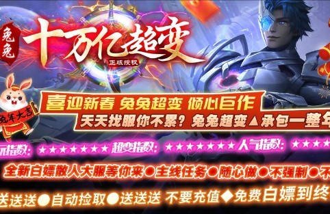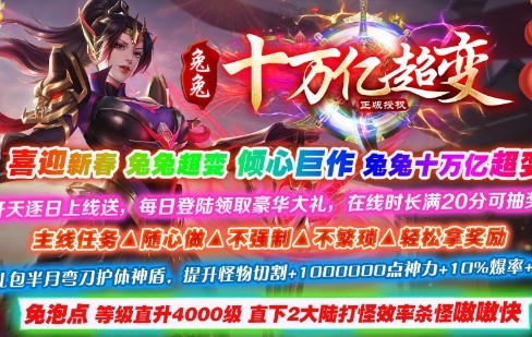 兔兔十万亿超变传奇来袭,激情超变传奇,神器传奇,传奇礼包奖励:新年如意礼包*1,力量原石*10,生命原石*10,迎春的史诗级别传奇,完美策划,良好制作,上线前往福利中心领取多重礼包,签到领取独有奖励,会员系统奖励更加丰富,打开新春专栏,获取新春专属礼包,一遍打怪一遍发财,非常值得去尝试的经典传奇竞技游戏。