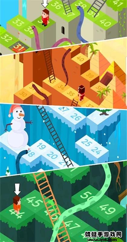 蛇梯棋手游是我们大家都很熟悉的一种童年的游戏棋,他需要玩家们经过投骰子的方式来让自己的小人进行前进,通过骰子上的点数来不断地向上爬,沿途中你经过的地形还有可能会出现各种意外情况。