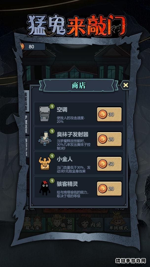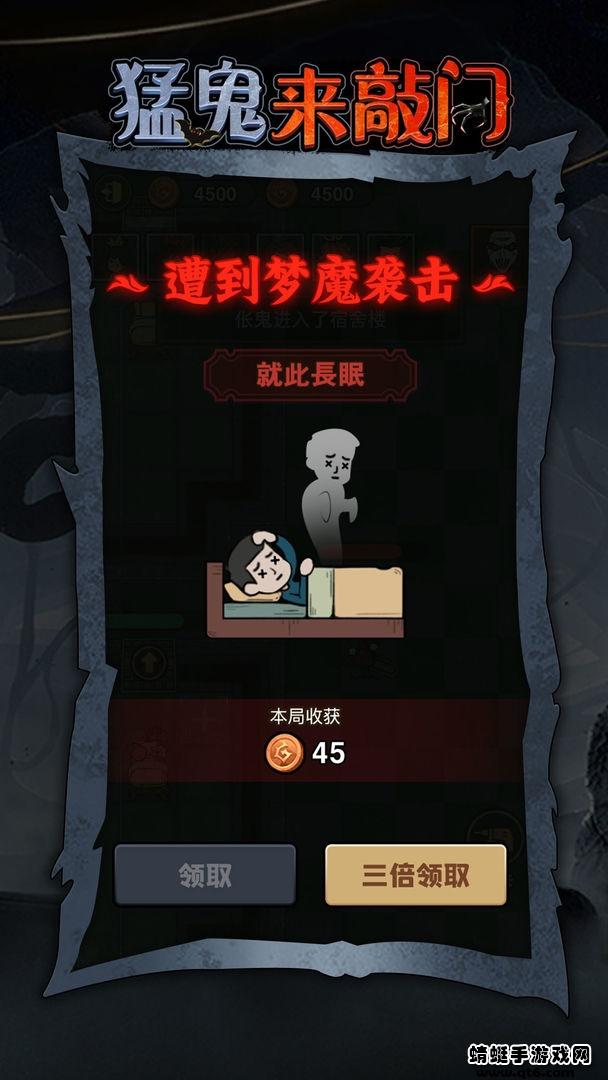 在塔防游戏里,也是比较新颖的,一开始玩就吸引了我,具体玩法,就是躺平赚钱,再升级炮台和门,防止猛鬼进来,只要猛鬼进来,游戏就输了。
