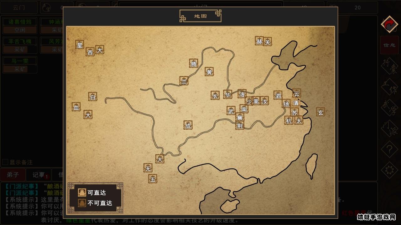 游戏的游历玩法以MUD类游戏为基础,构建一个开放的江湖。你可以摆脱主线剧情的限制,带领弟子在地图中自由探索。