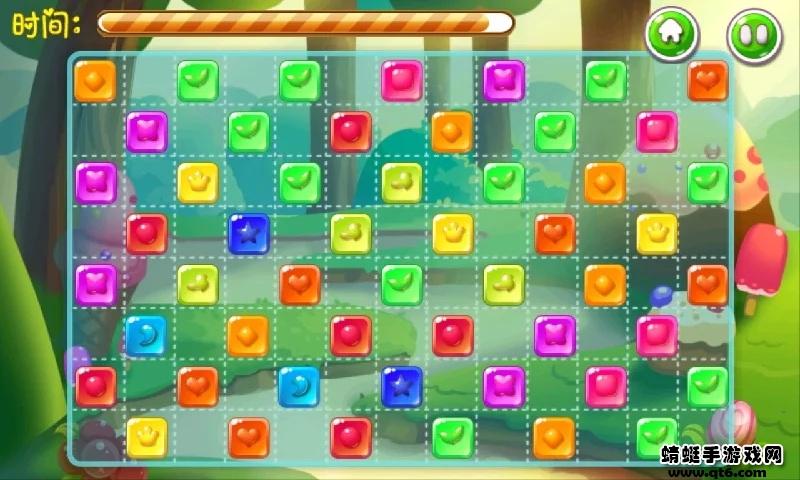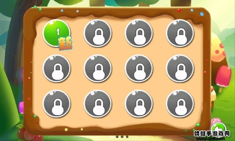游戏中还加入了正方形的“四消”模式,当你4个相同颜色的糖果消除了之后,还将合成一个没有颜色属性的泡泡糖,而这个泡泡糖可以与其紧邻的糖果任性复制,从而让你更好的完成消除。