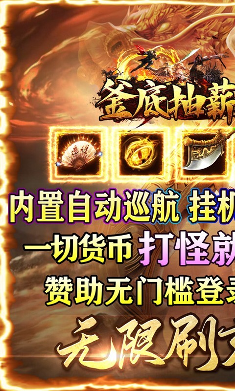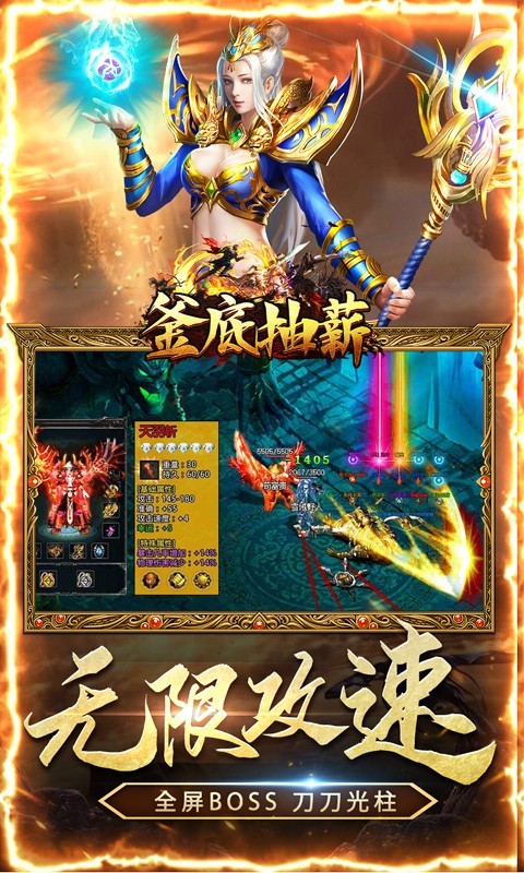 釜底抽薪最新版传奇英雄,经典挂机出去,上线轻松获取礼包,精彩打金玩法,轻松地装备元宝利用玩法,自由的嫁衣,经典的传奇单职业,刀刀暴击,满地光柱,游戏的暴击率非常的高,非常真实的精彩游戏玩法,刺激格斗竞技对战pk,去体验无限趣味的游戏,刺激的游戏感受。系统非常完善。人物建模非常的完美,非常值得去尝试的传奇竞技冒险游戏。