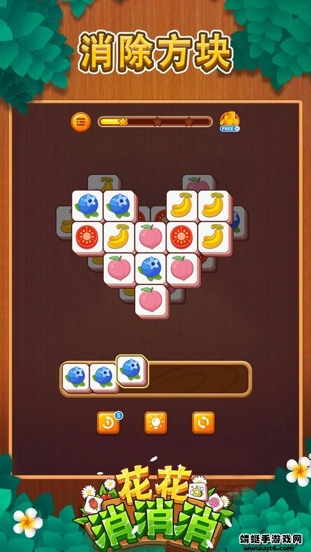 - 配对相同的水果或方块(选择三个相同的方块),消除所有的方块,你就成功过关了!