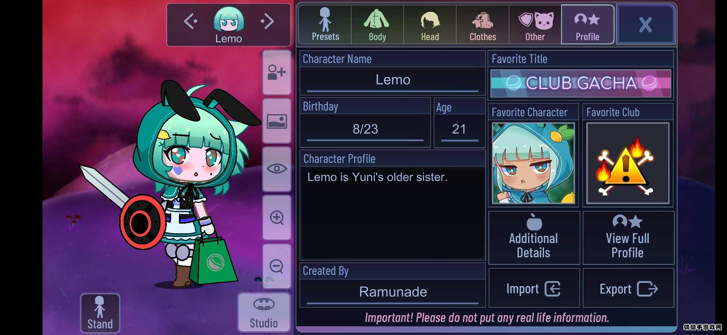 Gacha Glitch游戏有超多的内容,自由度非常高,玩家可以自由的装扮动漫形象,数千种服饰可以自由的选择搭配,游戏还有宠物系统,创建您的动漫形象来进行战斗,也可以创造一个有趣的动漫故事,游戏所有的内容都是免费的,快来玩吧。