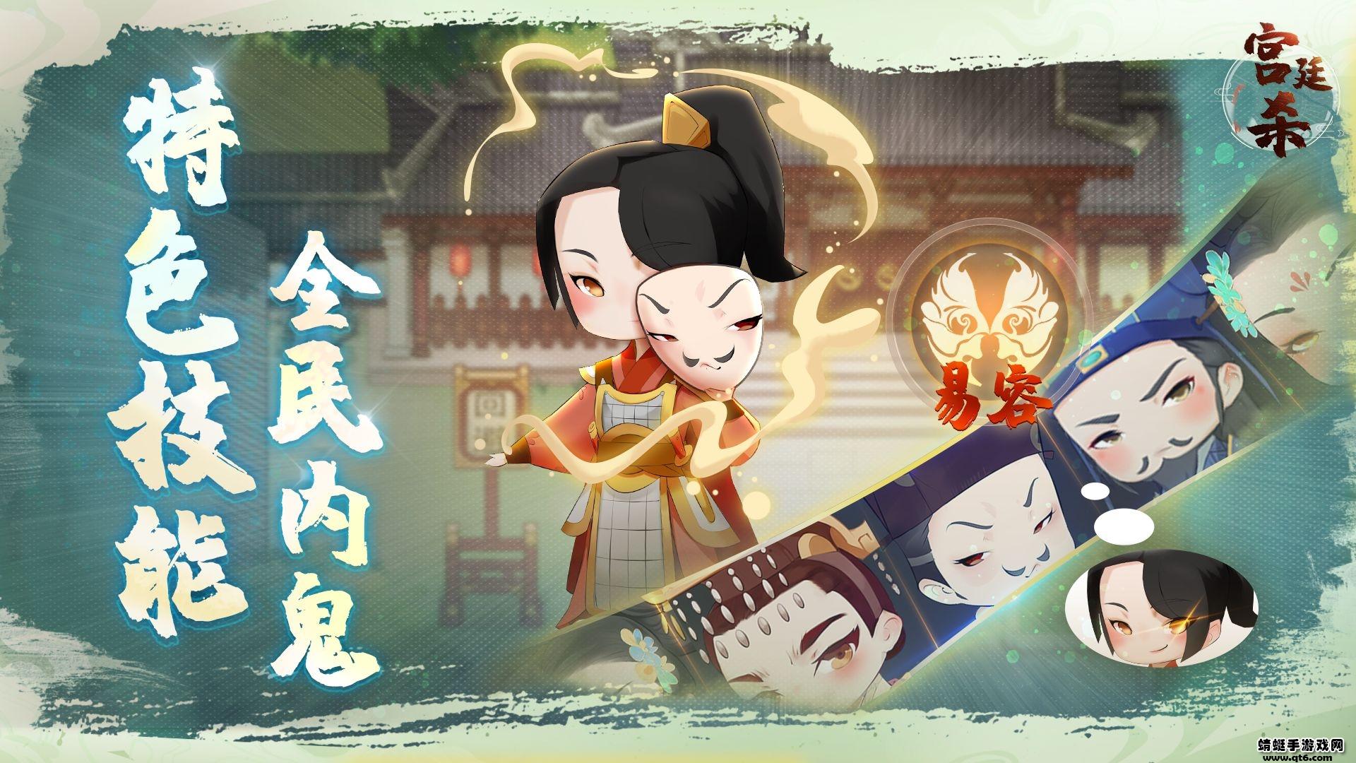 宫廷杀手游是一款国风特色的多人狼人杀游戏,古色古韵的场景,人物形象,游戏内有皇上,忠臣,反贼,平民等身份每一个的阵营都是对应不同的获胜条件。通过观察别人的发言才能够更好的实现,找到真正的凶手。