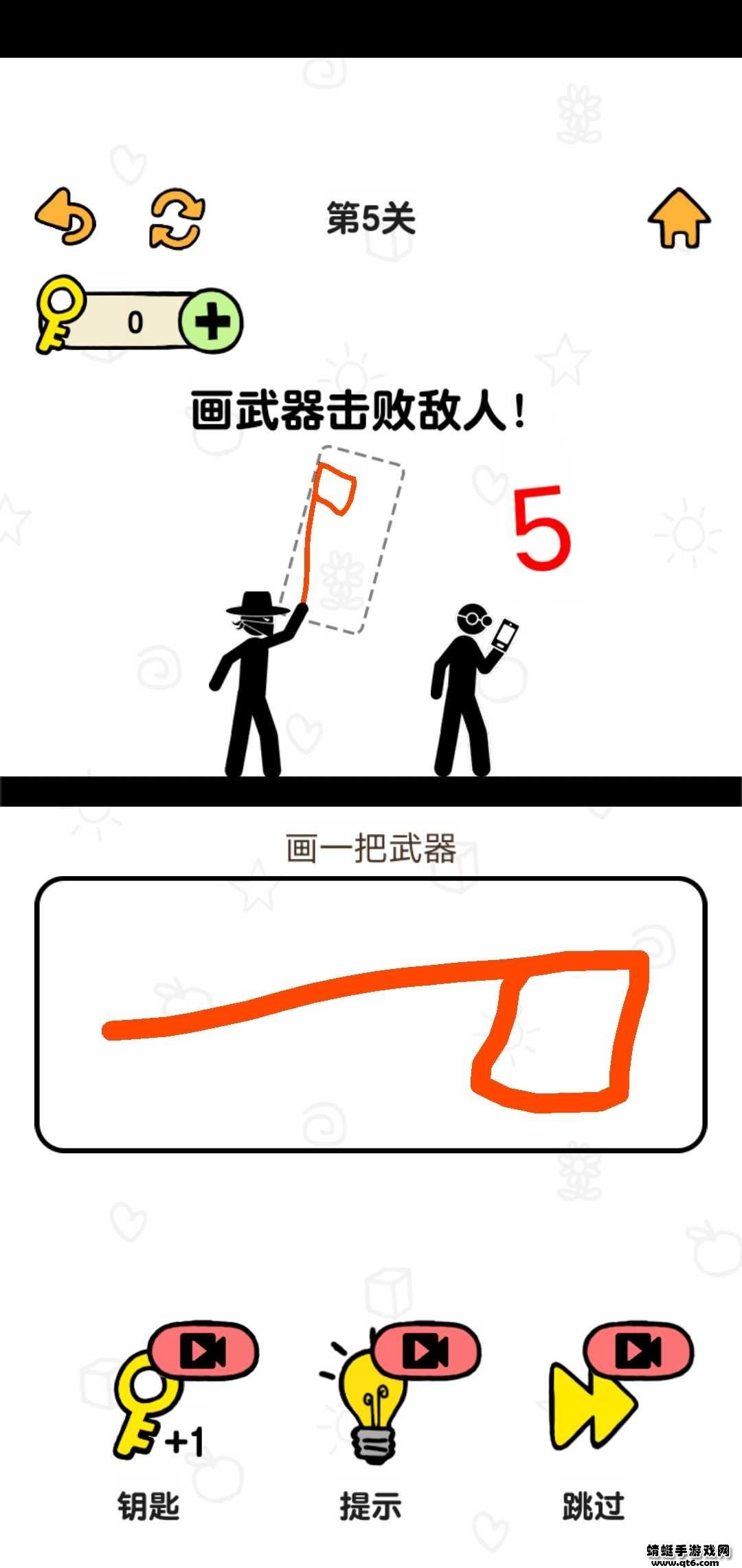 画画火柴人是一款益智玩法的游戏,玩家要帮助火柴人画出武器来攻击敌人,根据场景和敌人手里武器的不同,玩家需要改变武器的画法,无需您的绘画技巧多高超,主要考验您随机应变的能力,闯关过程非常的搞笑有趣;、