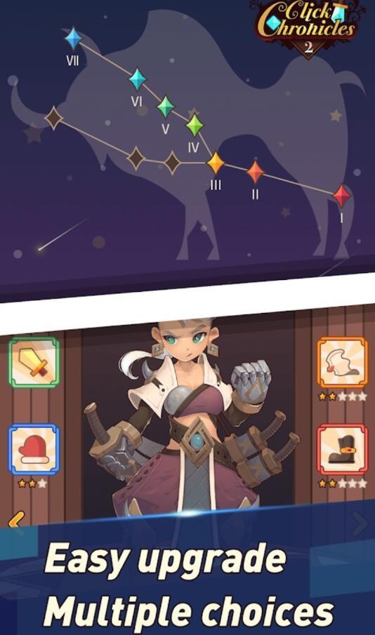 点击编年史破解版无限钻石是一款非常好玩的放置类冒险游戏,游戏的画面Q萌可爱,玩法简单新奇,在游戏中玩家需要组建一支属于你的团队开始冒险,不断提升自己的力量来保护家园免遭敌人的破坏,带你开启一段全新的冒险故事。
