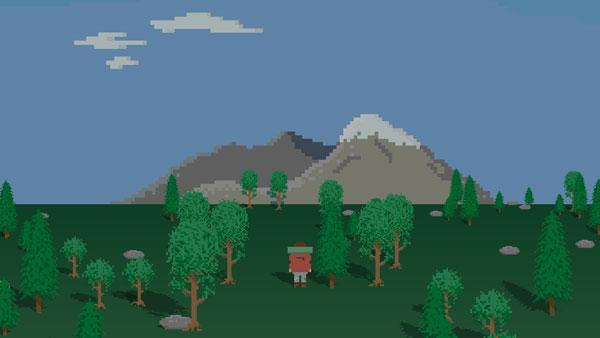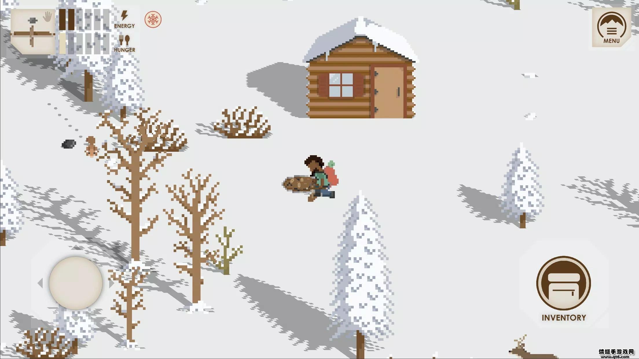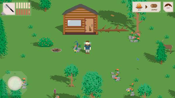 2、进入游戏后如图,你处在一个房子前,手里有一把斧子,你要去不断砍树获取木材;