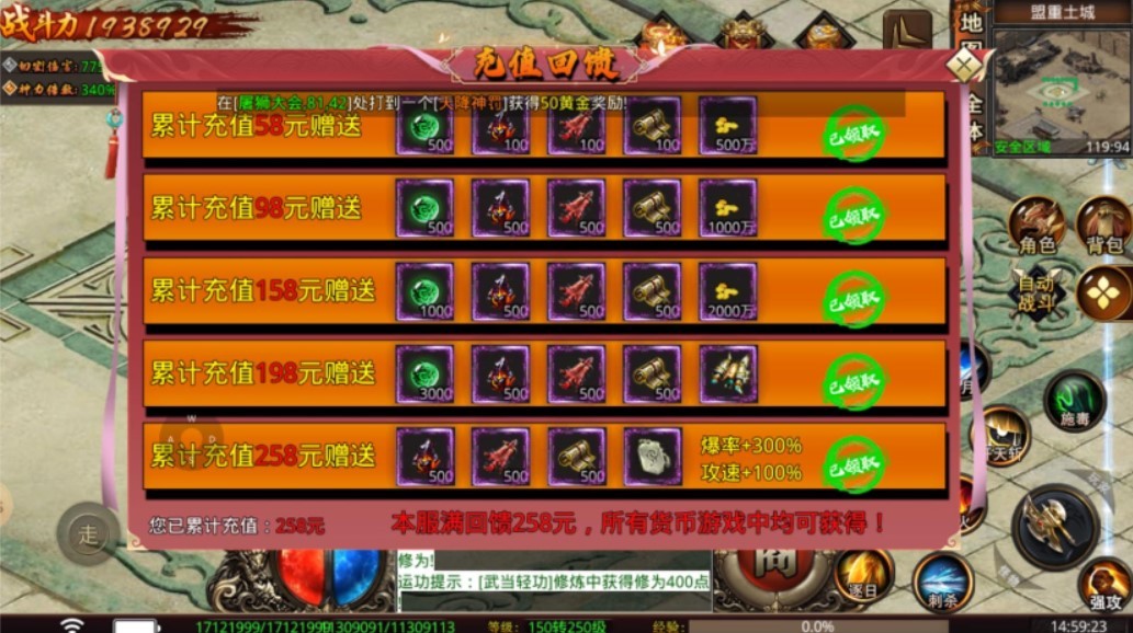 3.挂机继续送连抽,在线奖励送连抽,爬塔送连抽,无限赠送传奇元宝。