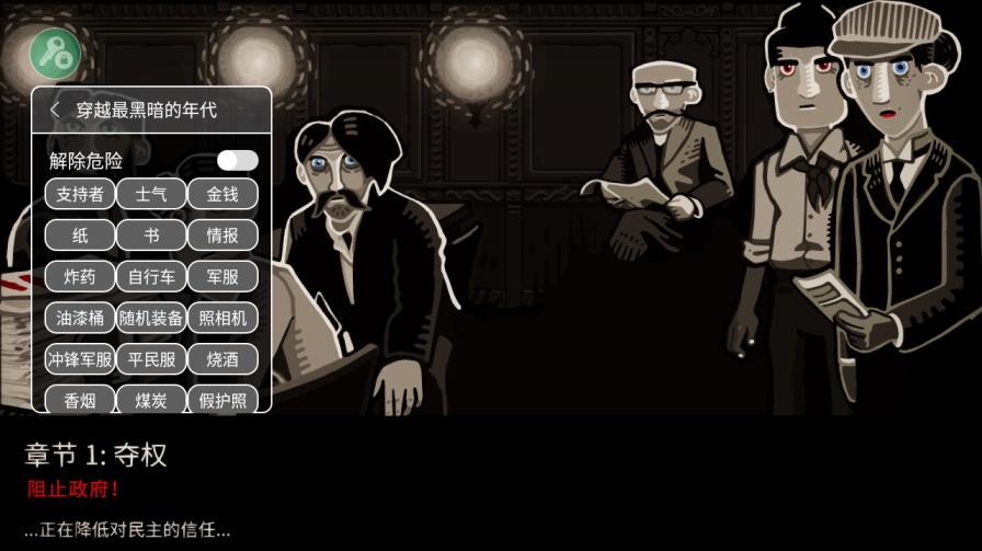 穿越最黑暗的年代破解版是内置了一个作弊菜单,菜单中包含了消除危险、加金钱、加士气、加服装、加武器等多项修改内容,非常的实用方便,这款游戏讲述了德国纳粹政府统治时期的反政府抵抗组织的故事,游戏中的令人喘不过气的压抑的气氛,无处不在的盖世太保,充满监视和告密的社会让玩家能够真实体验到那个纳粹政府统治之下的黑暗的社会时期。