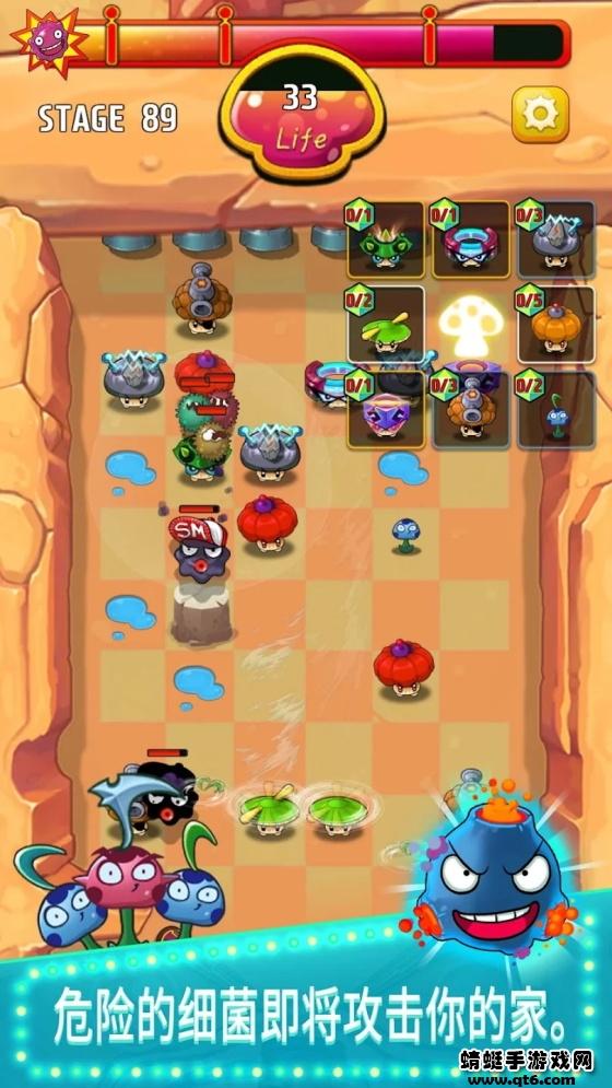 细菌的能力可以进化,所以要有传略性地安装蘑菇,方可抵挡。