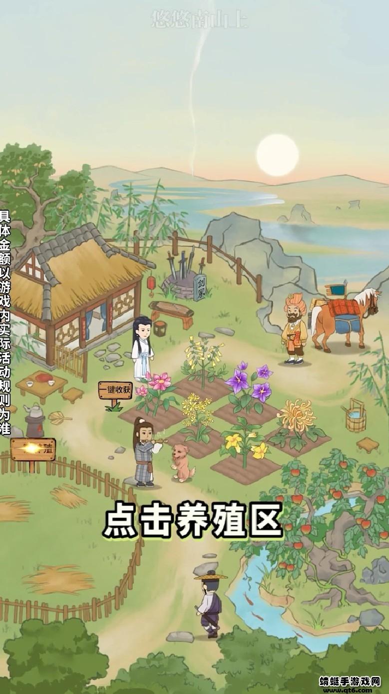 悠悠南山上是一款古风题材的模拟经营小游戏,游戏将带你感受最为美好的田园生活,玩法丰富,在这里你不仅可以自己种药材,也可以养动物。带你体验各种不一样的事情。