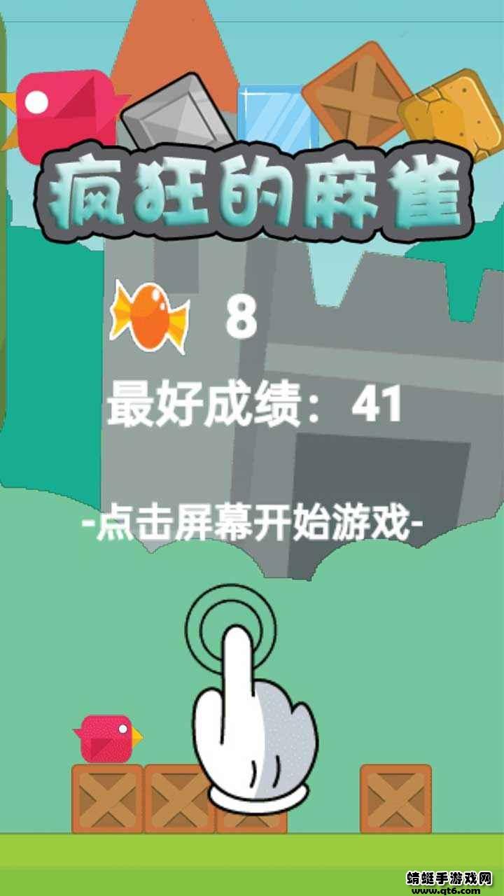 疯狂的麻雀手游一款极为解压的趣味躲避障碍物的小游戏,十分的简约的制作模拟,玩家们只需要通过操作小鸟,躲避木箱的下坠,同时能够吃到更多的糖果,就可以获得奖励,简单且解压。
