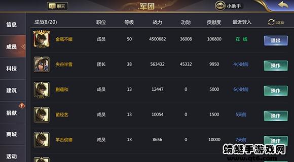 由工会会长消耗军团资金,即可使军团科技升级。并提升对应的属性。
